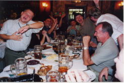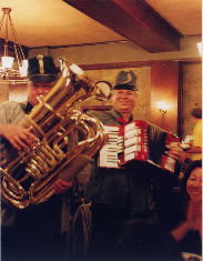 楽士が2人、アコーディオンとチューバを鳴らしながら、客のあいだを回って歩く。観光客を見定めて、その国の歌を奏でると、ビールのほどよくまわった客席から、やんやの喝采が送られる。なかには踊りだすのもいる。キリストが最後の晩餐に用いた杯を名前にいただいたた店にしては気取らず、あけっぴろげな雰囲気が客を呼ぶのだろう。