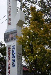 旧官営富岡製糸場は今年7月に国史跡に指定された。これを機に、群馬県は同製糸場を核に、県内の養蚕・製糸・織物にかかわる近代産業遺産を結びつけて世界遺産に登録する運動を広げている。旧碓氷社本社本館(安中市)、島村養蚕農家群(伊勢崎市)、旧新町屑糸紡績所(新町)、桐生本町建造物群(桐生市)、荒船風穴(下仁田町)、碓氷峠鉄道遺構(松井田町=国重要文化財)などだ。