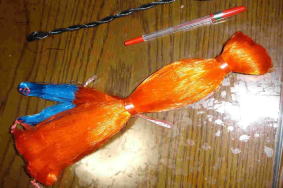 水色の部分は、四角い網の両端です。カーテンのように畳まれていた。
