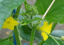 たくさんの花があり,赤ちゃんキュウリは付いていない「おばな」