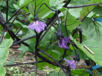 これは,ナスの花が雄花と雌花に分かれてなくて(完全花),1つの花におしべ・めしべがあるから,無駄花(おばなの事?)がないので,こういう風に言うのね。でも,ナスの花は,全て下向きに咲くって知ってた?
