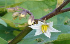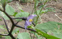 普通のナス。1つずつ咲く青い花。