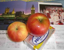 背景は,世界文化遺産―ウエストミンスター寺院。チーズとリンゴの組み合わせ。本当に美味しい。ケーキも真っ青だよ。