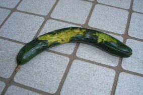 「おーい、見て、見て、このキュウリ」と夫が呼んだ。