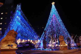 高崎市役所広場にて。右下の黒い影は、見物の人だかり。夢のあるイルミネーションです。